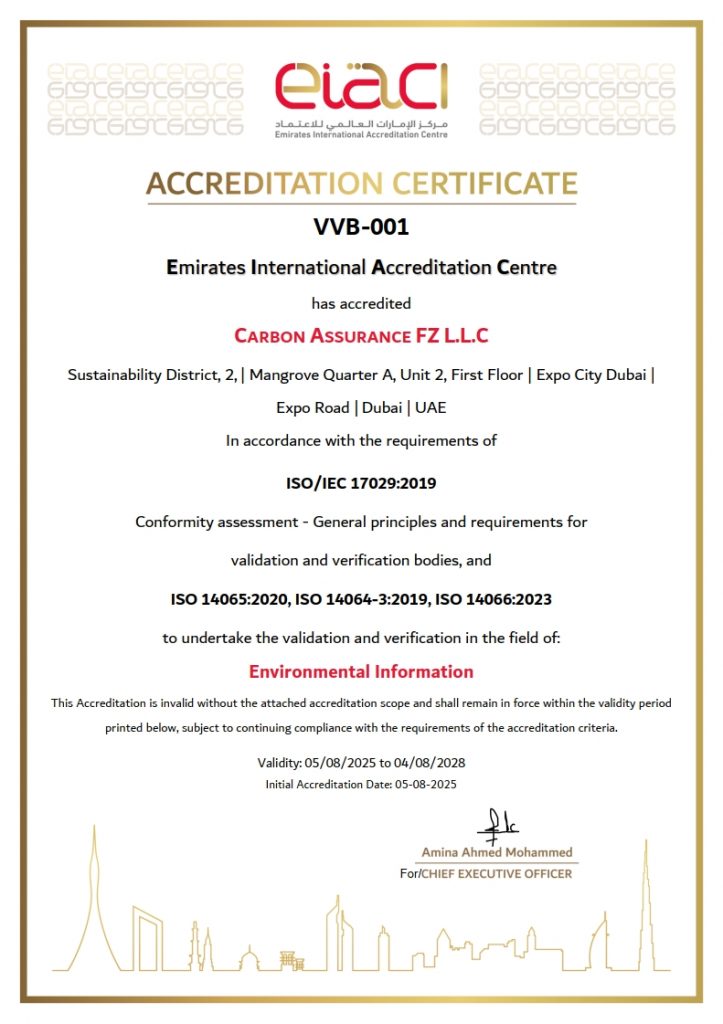 - Carbon Assurance has become the first company in the UAE to be honored as an official auditor in the field of climate project validation and verification, receiving formal recognition from the Emirates International Accreditation Centre (EIAC) for its leadership and compliance with international standards